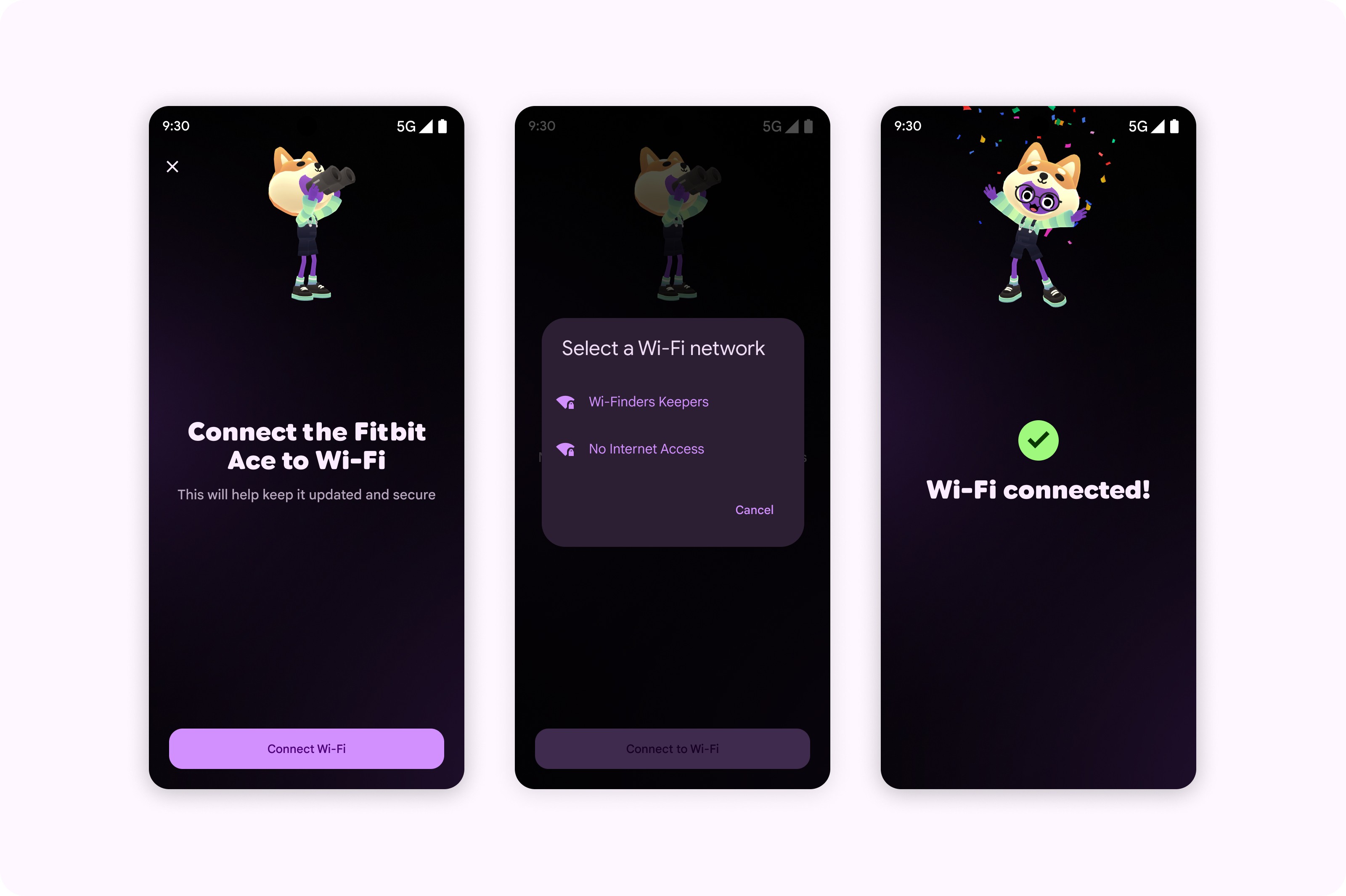 Onboarding was a critical first touchpoint for parents setting up their child's Fitbit Ace LTE. I collaborated closely with engineering to understand technical limitations. Additionally, since kids' account creation was owned by another team, we had to ensure our flows aligned with Google's broader ecosystem.